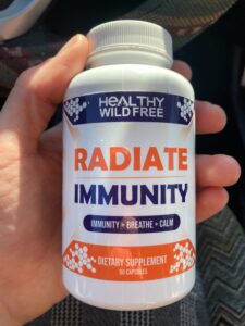 Radiate Immunity is an immune boosting supplement with 18 all natural ingredients that give you the most potent antioxidants, anti-pathogens, and adaptogens in the world. It utilizes 18 bioenergetics inspired by Chinese, Amazonian, Native American, and Ayurvedic medicine. These ingredients include 9 essential oils such as Mint and clove(which is what it tastes like if you break open a capsule) and 9 botanical extracts, including Kelp and Ashwagandha (which can help alleviate menstrual cramps and eliminate uterine fibroids).