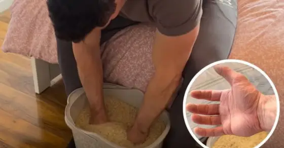 Rice gripping is a Japanese hand-conditioning technique where you submerge your hands into a bucket of dry rice and: